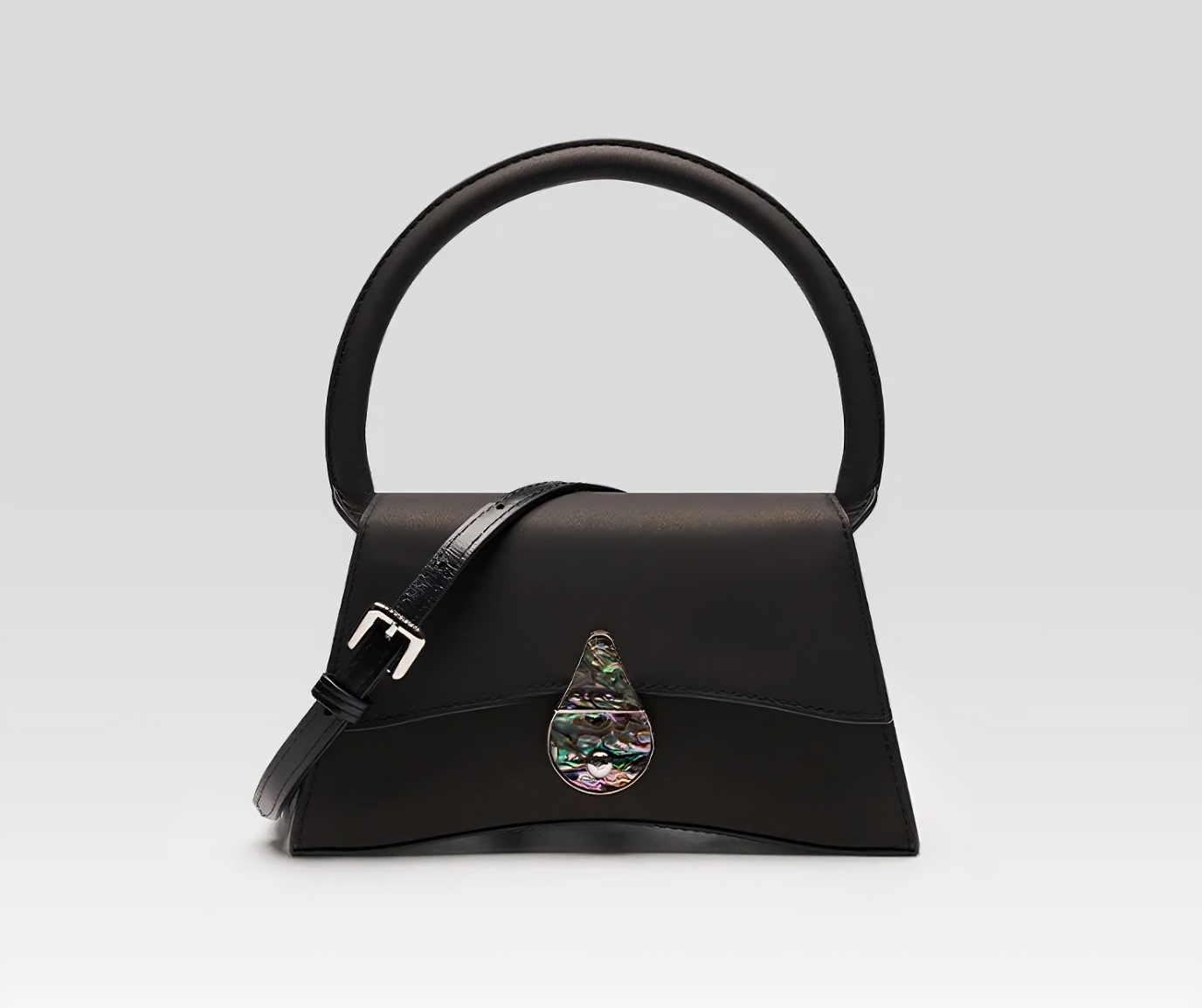 Luxurious 18K gold-accented cowhide handbag with secure lock closure, blending sophisticated design and practical functionality