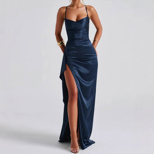 Backless dress women are making waves in 2025 with this high-grade suspenders slit dress, a sleek navy blue stunner that’s all about sophisticated allure. This backless dress women features a high waist and one-step skirt design, crafted from luxurious satin polyester for a smooth, elegant drape. Available in XS, S, M, and L sizes, this single-piece sling-style dress boasts a solid color pattern and sleeveless cut, with its no-back detail and long skirt length perfect for private socialite vibes. The backless dress women trend is heating up with this satin masterpiece, offering a high waist silhouette that flatters every figure. Made from polyester fiber, it’s lightweight yet posh, with the slit adding a daring touch to its refined one-step skirt shape. The suspenders and sleeveless style make it a chic pick for upscale events or bold evenings out. Elevate your wardrobe with this backless dress women—a high-grade satin slit dress that’s defining 2025 elegance. The high waist and no-back design bring effortless glamour, pairing stunningly with heels for a head-turning look.