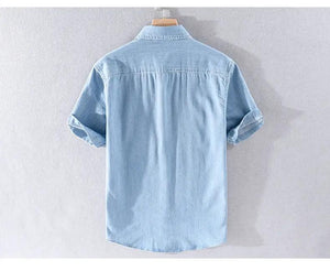 Refresh your summer wardrobe with our Casual Denim Short-Sleeved Shirt, designed for effortless style and versatility. Featuring a solid color pattern, this shirt is a staple piece that complements a range of outfits, making it a perfect choice for any casual occasion.