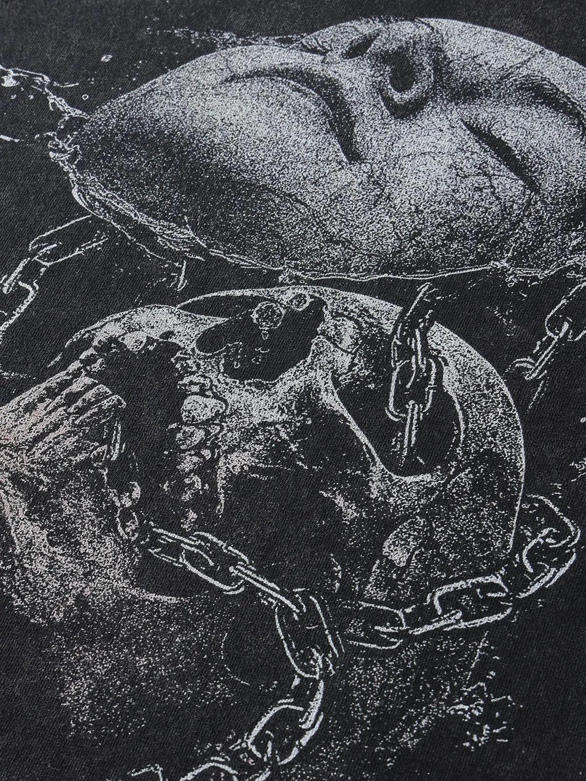 Upgrade your streetwear collection with our Men's Dark High Street Skull Print Hip Hop T-shirt. This retro black tee features a bold cartoon skull print, perfect for making a statement. Designed for the youth, it embodies the edgy, rebellious spirit of hip hop culture.