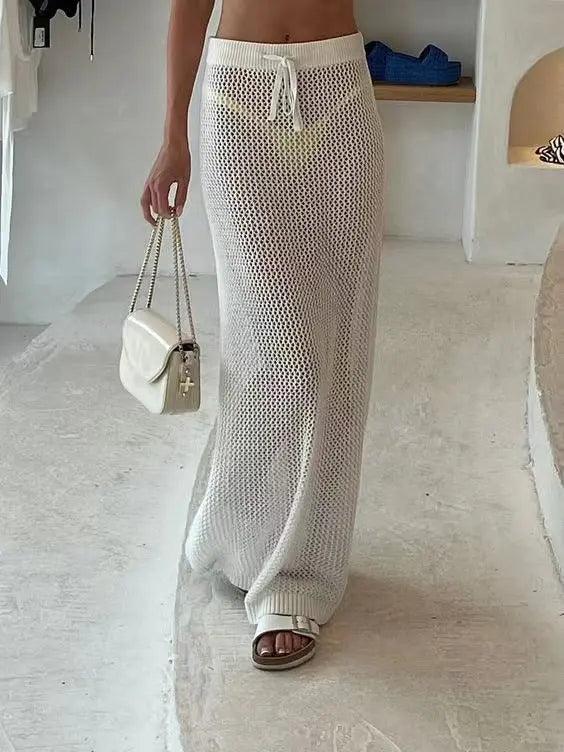 Elevate your street style with the Hollow Out See-through Knitted Skirt for Women. This chic one-step skirt combines edgy design with a touch of sophistication, perfect for the modern fashion-forward woman. Made from high-quality polyester fiber, the knitted fabric offers a comfortable fit while the see-through hollow-out pattern adds an alluring twist to your outfit.