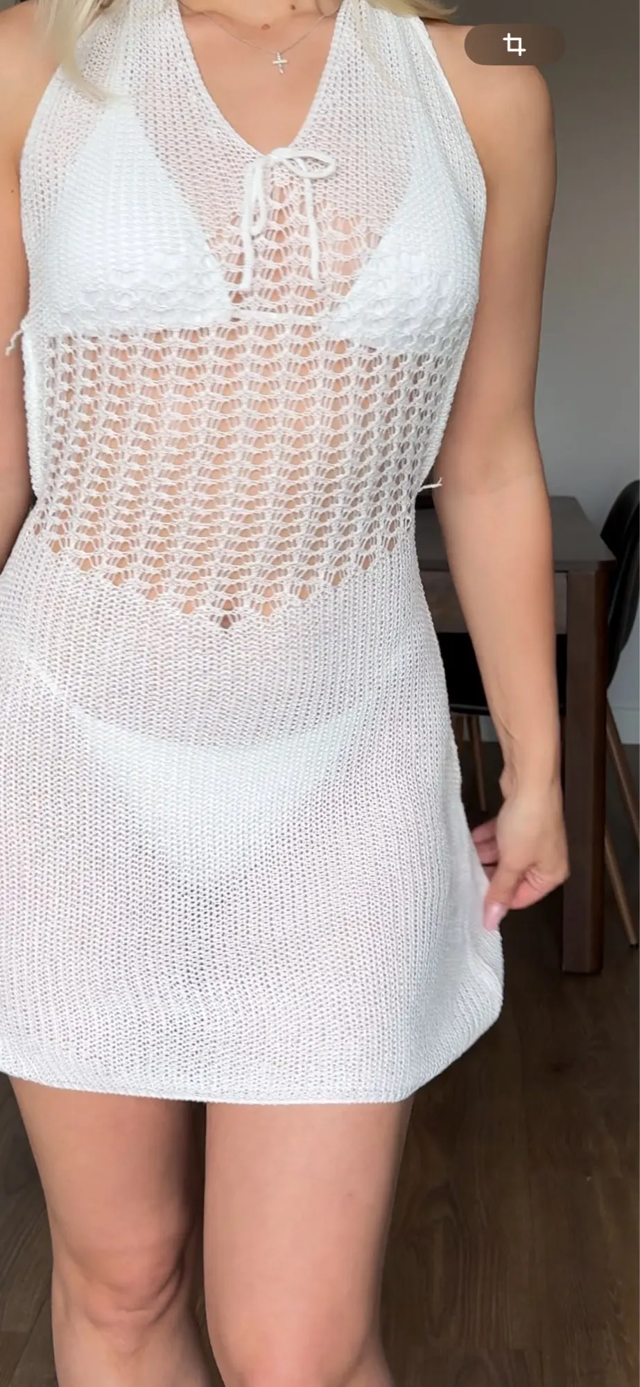 Women’s knitted dress styles captivate with this V-neck halter hollow design, a sleek piece in white and black hues, perfect for a chic, versatile look. Crafted from acrylic fiber, this women’s knitted dress comes in S, M, and L sizes, featuring a mid-waist and sleeveless silhouette that blends breezy comfort with elegant flair. The hollow knit detailing adds a delicate, openwork charm, making it a standout choice for warm days or layered outfits, offering a balance of sophistication and ease for any occasion. The women’s knitted dress trend embraces airy elegance, and this acrylic piece delivers with its V-neck halter style and mid-waist fit that flatters the figure effortlessly. The white and black color options keep it timeless, while the hollow design brings a modern, breathable edge, perfect for pairing with sandals or cardigans. It’s a dress that’s both stylish and light. Slip into this women’s knitted dress—a V-neck halter stunner that’s all about grace and comfort. With sizes S to L and an acrylic build, it’s a hollow-knit gem that elevates any wardrobe with a touch of refined simplicity.