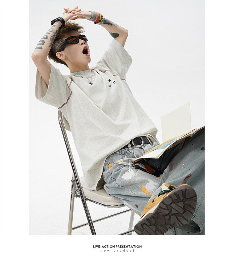 Features: Short sleeves, loose fit, round neck, letter print design, common length