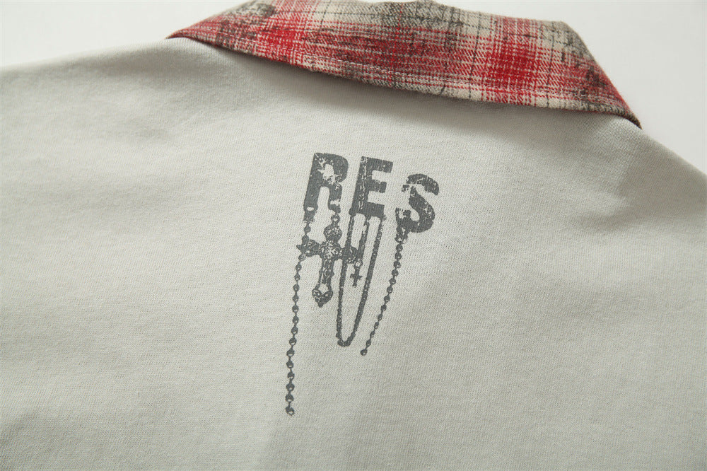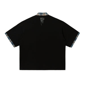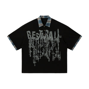 Features: Short-sleeve, loose fit, lapel collar, asymmetric cut, graffiti printing