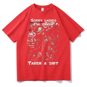 Men’s graphic t-shirt styles make a bold statement with this Epic Skull Man "Sorry Ladies I’m Taken" design, a sleek black leisure piece perfect for casual vibes. Crafted from lightweight polyester, this men’s graphic t-shirt features a round neck and regular sleeves, offering a comfy fit with a standout skull and text print that adds a playful edge. The durable fabric keeps it easy to wear and wash, making it a top pick for guys who love a mix of humor and street-ready style in their everyday wardrobe. The men’s graphic t-shirt trend leans into eye-catching designs, and this polyester tee delivers with its epic skull graphic and cheeky "Taken" message that’s sure to turn heads. The round neck and regular sleeve cut keep it classic, while the black hue adds versatility for pairing with jeans or shorts. It’s a laid-back essential with attitude. Rock your look with this men’s graphic t-shirt—a skull print stunner that’s all about fun and flair. With its polyester build and leisure style, it’s a go-to for casual outings or chilling with a confident, taken vibe.