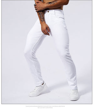 Men's White Stretch Skinny Jeans – Pure White Denim Pencil Pants