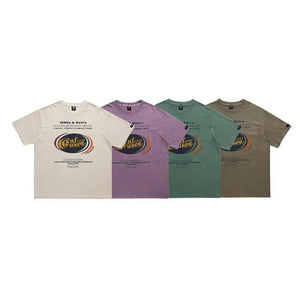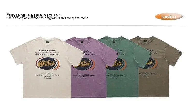 Elevate your casual wardrobe with our Retro Washed Text Printed Off-Shoulder Loose Couple T-Shirt. Crafted from high-quality cotton, this T-shirt features a stylish letter pattern in a classic brown color, perfect for teenagers and young adults.