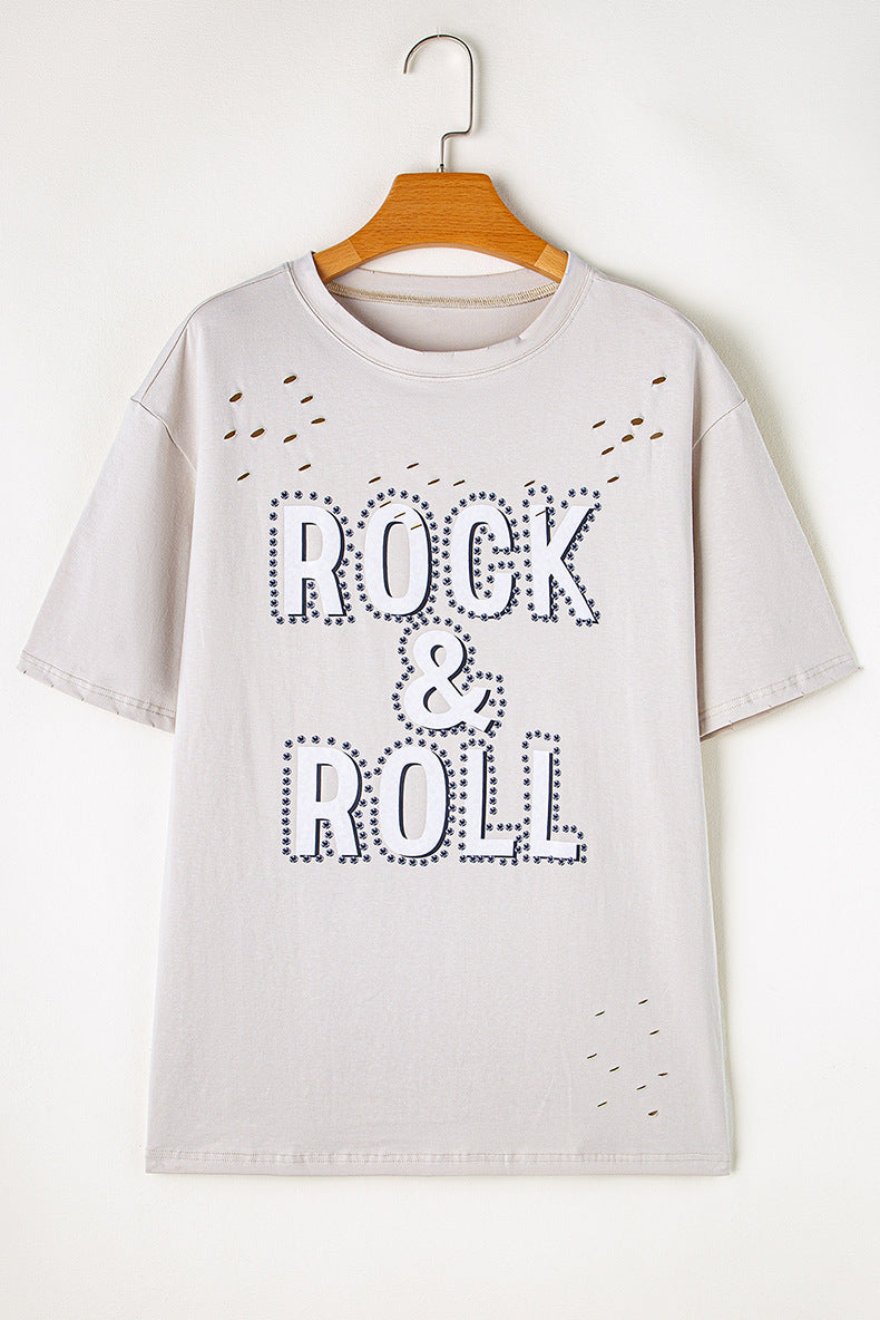 Unisex Ripped T-Shirt - Trendy Gray Loose