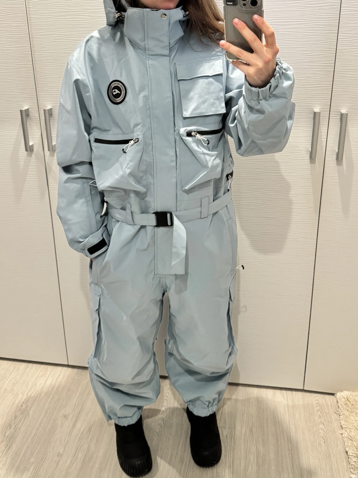 Design: Neutral, modern aesthetic with practical winter sport functionality