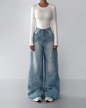 Perfect for those who appreciate retro-inspired fashion with a modern twist, these rhinestone-embellished jeans elevate your casual outfits effortlessly. Style them with sneakers for a laid-back, trendy vibe or with heels and accessories for a more sophisticated look. The irregular rhinestone design adds just the right amount of sparkle, making these jeans an essential piece in any fashion-forward wardrobe.