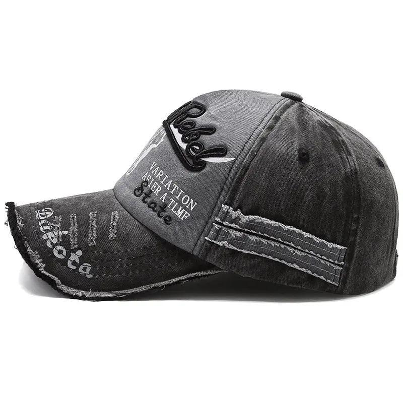 The embroidered letters on the front add a distinctive touch, making this cap not just a functional piece but also a statement of personality and taste. Whether you're out for a casual day in the sun or looking to make a fashion statement, this vintage baseball cap is your go-to choice for both style and protection.
