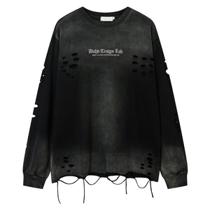 Craftsmanship: High-quality distressed letter embroidery with drop-shoulder seams for relaxed oversized look