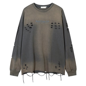 Vintage Letter Embroidery Loose Long Sleeve T-Shirt