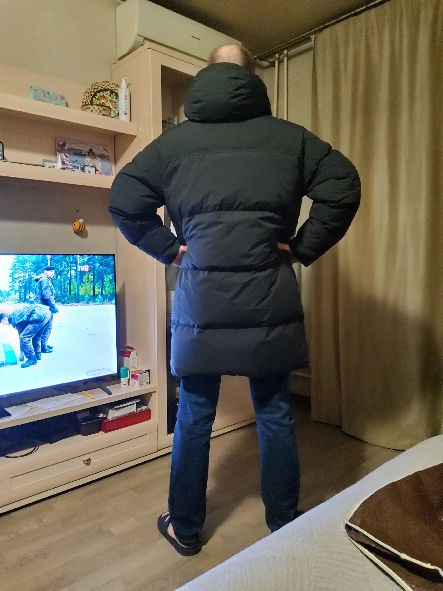 Design: Long-length puffer design for couples with sleek lines and protective hood for extra warmth
