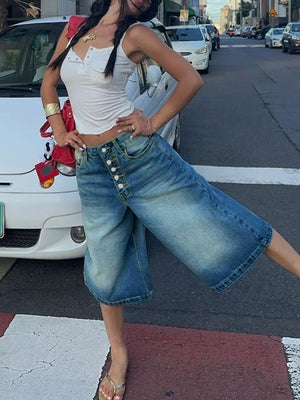 Women’s Denim Shorts - Multi-Breasted Cropped Fit