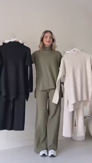 Women’s knitted suit styles elevate casual wear with this turtleneck loose split design set, a long-sleeved top and straight trousers combo that’s stylish, beautiful, and comfy in white, black, and green hues. Crafted from polyester with a polyester fiber main composition, this women’s knitted suit features a unique solid color design with regular sleeves, blending fashion and ease for a versatile look. The good material ensures comfortable wear, while the variety of colors offers any choice, making it a chic pick for laid-back days or trendy outings with a loose, split-detail flair. The women’s knitted suit trend embraces relaxed elegance, and this polyester set delivers with its turtleneck top and straight-leg trousers that pair perfectly together. The solid color palette keeps it timeless, while the split design adds a modern twist, ideal for layering or wearing solo with confidence. It’s a fashion-forward two-piece with a cozy vibe. Step into this women’s knitted suit—a turtleneck loose stunner that’s all about style and comfort. With its long sleeves and polyester build, it’s a solid set that pairs effortlessly with boots or accessories for a casual, beautiful finish.
