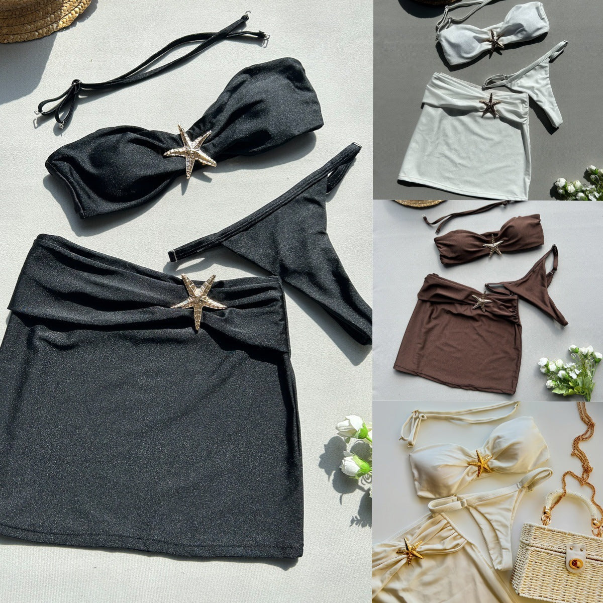Women’s Split Swimsuit - Solid Color Three-Piece