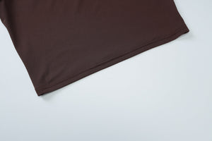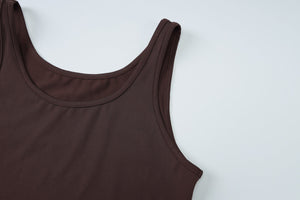 features: slim-fit vest, long pleated skirt with fold craftsmanship, exposed navel detail classic brown color