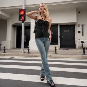 Available in sizes S to XL, this pullover-style top is ideal for summer wear or layering. Pair it with high-waisted jeans or skirts for a balanced and fashionable outfit.