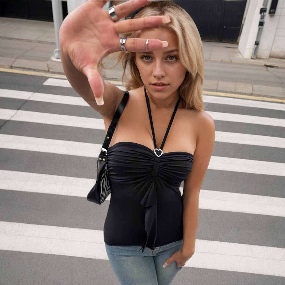 Women's T-shirt Halterneck Backless Sleeveless Top – Slim Fit Polyester Pullover